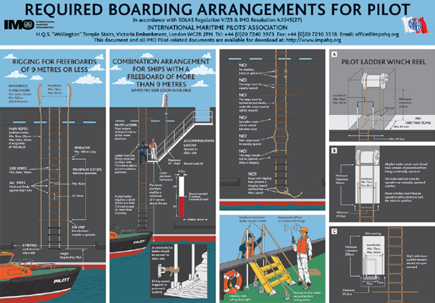 Pilot Ladders are specifically designed for the purpose of safe embarking and disembarking of Pilots. The design and construction of Pilot Ladders is strictly specified by international regulation by SOLAS, The International Convention for the Safety of Life at Sea.