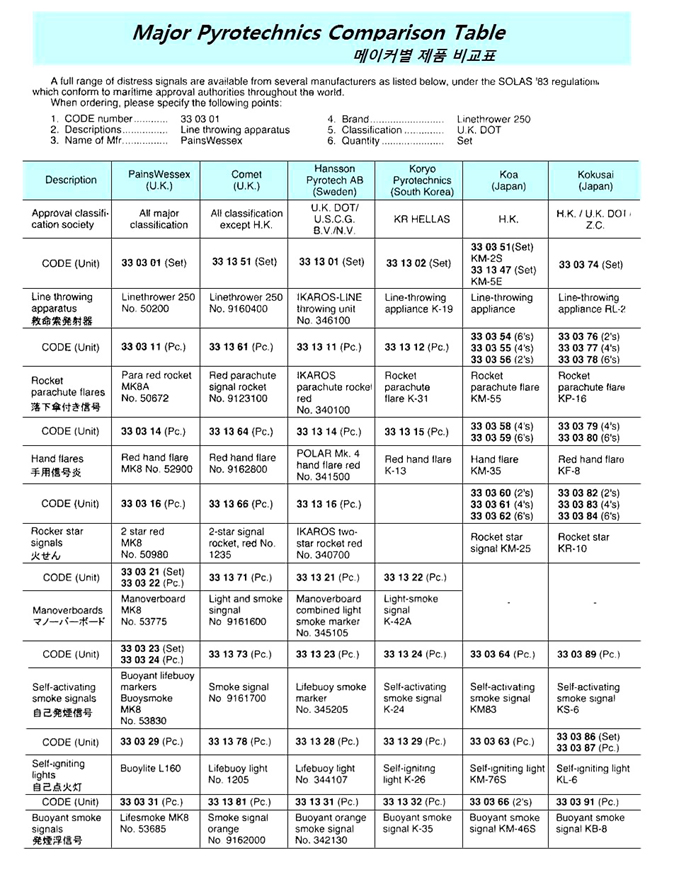 Liferaft Pyrotechnics requirement – IMPA 330336